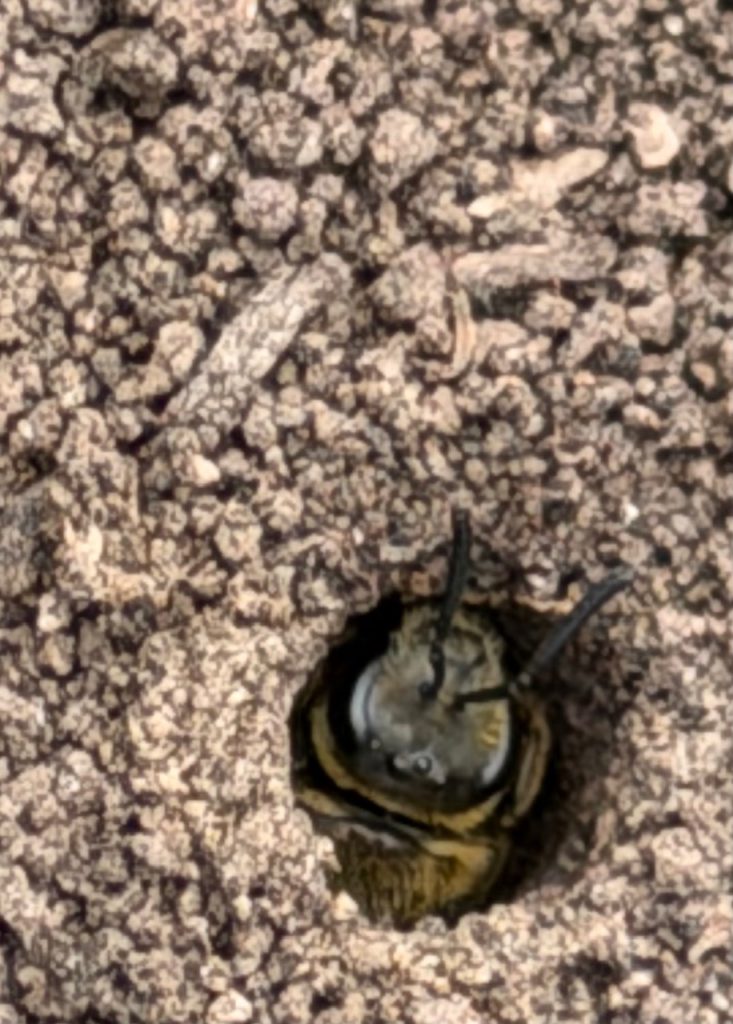 In wet weather the mother bee will close up the nest hole and at night to prevent predators.